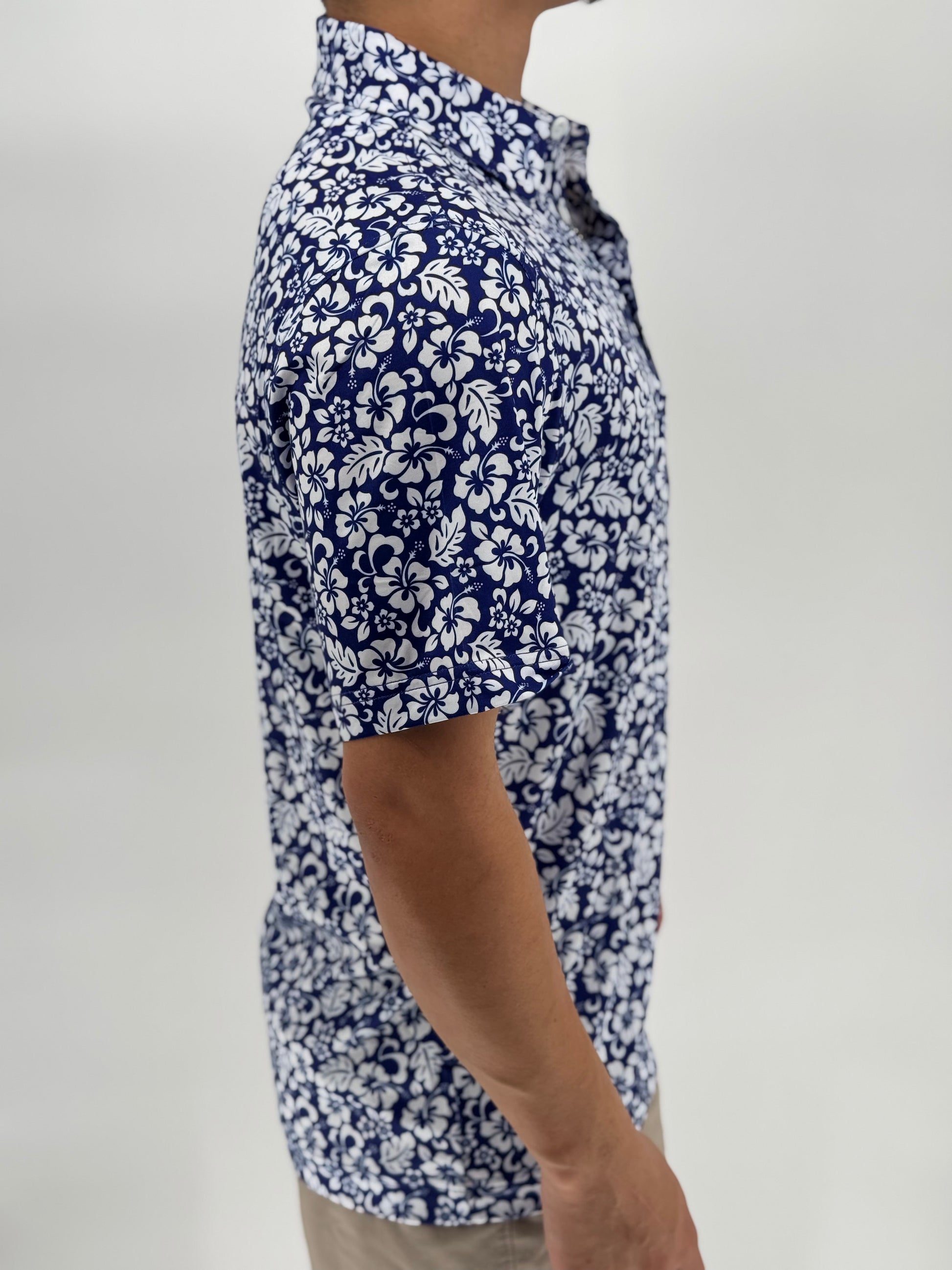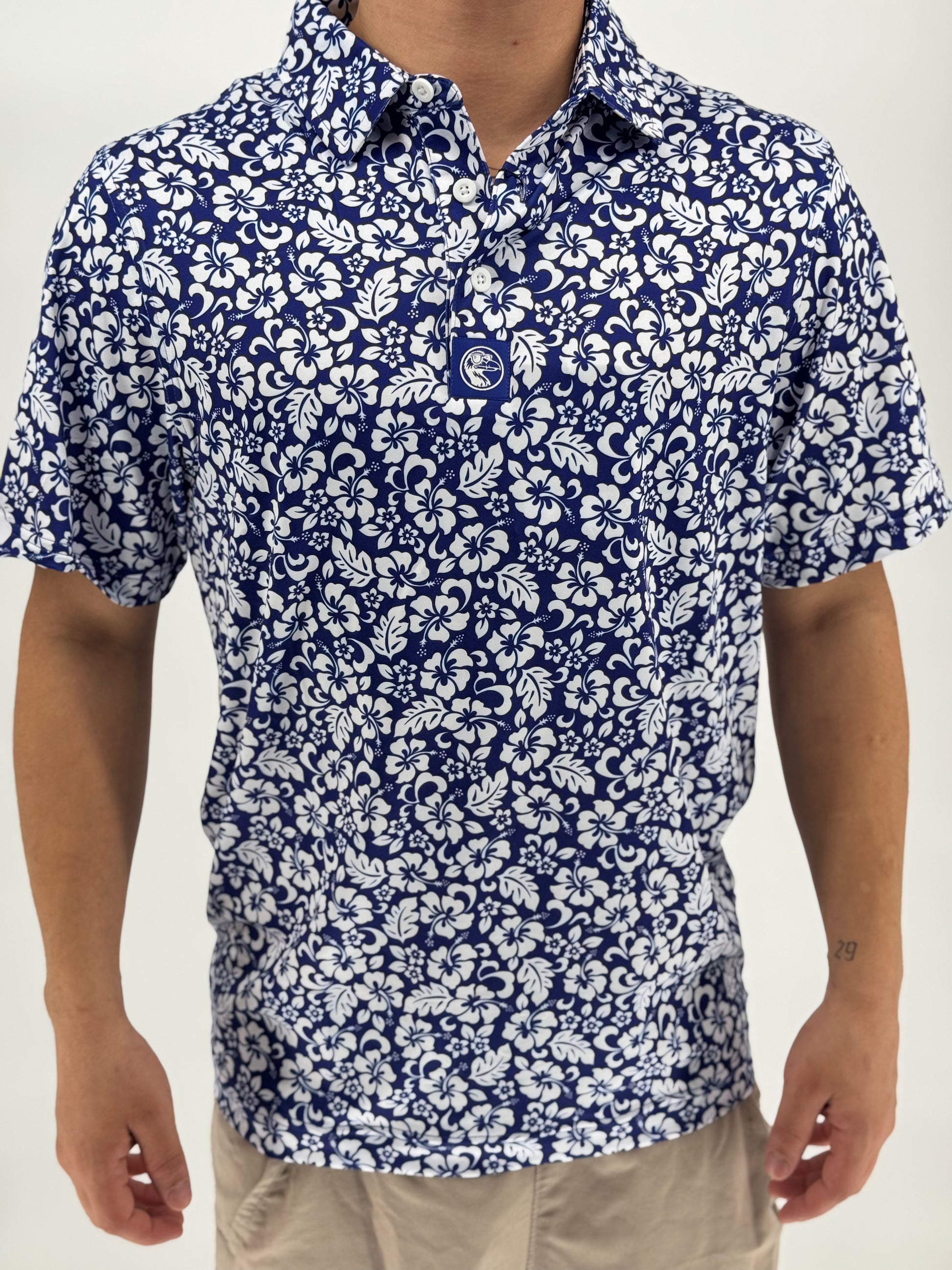 Say “aloha” to your new go-to golf shirt — the Aloha, Fore! Polo. With its crisp navy-and-white hibiscus pattern, this tropical throwback brings island energy to every swing. Lightweight, stretchy, and moisture-wicking, it's built for beach vibes with birdie focus. Whether you’re teeing off in paradise or just want to look like you are, this polo keeps your fit as fresh as your fade.