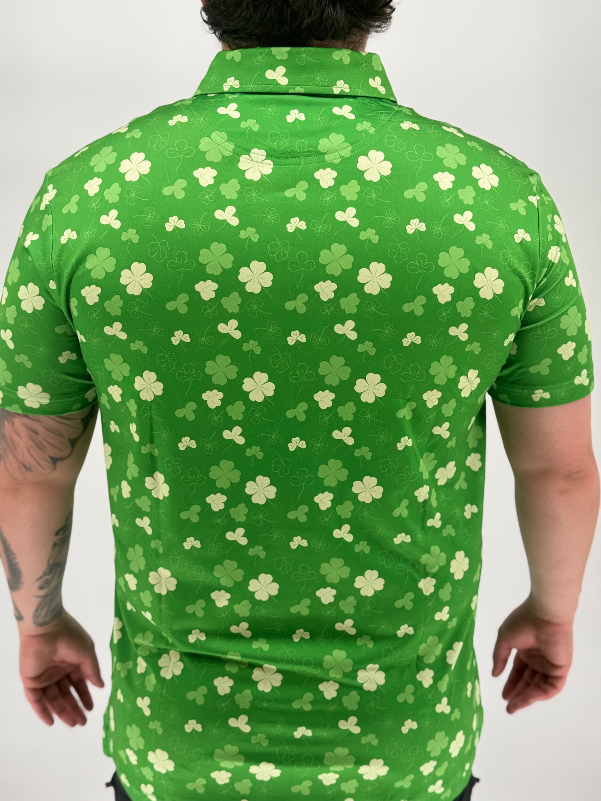 Bring the luck of the Irish and the swagger of a scratch golfer with the Shamrocked Polo. Featuring an all-over clover print on vivid leprechaun green, and a bold orange accent down the placket, this shirt is built for good vibes, great swings, and maybe even a Guinness at the turn. Breathable, stretchy, and packed with charm, it's perfect for St. Patrick’s Day rounds — or any day you’re chasing pots of birdies at the end of the fairway.
