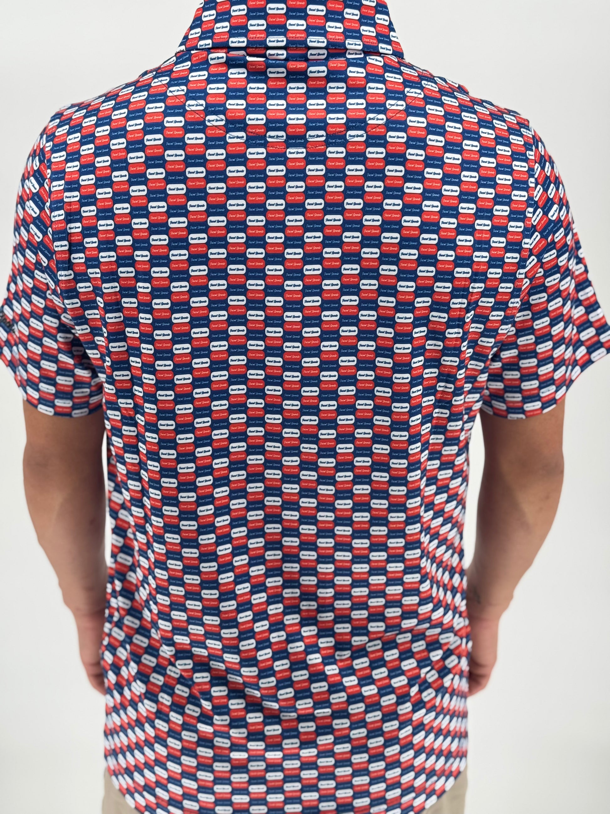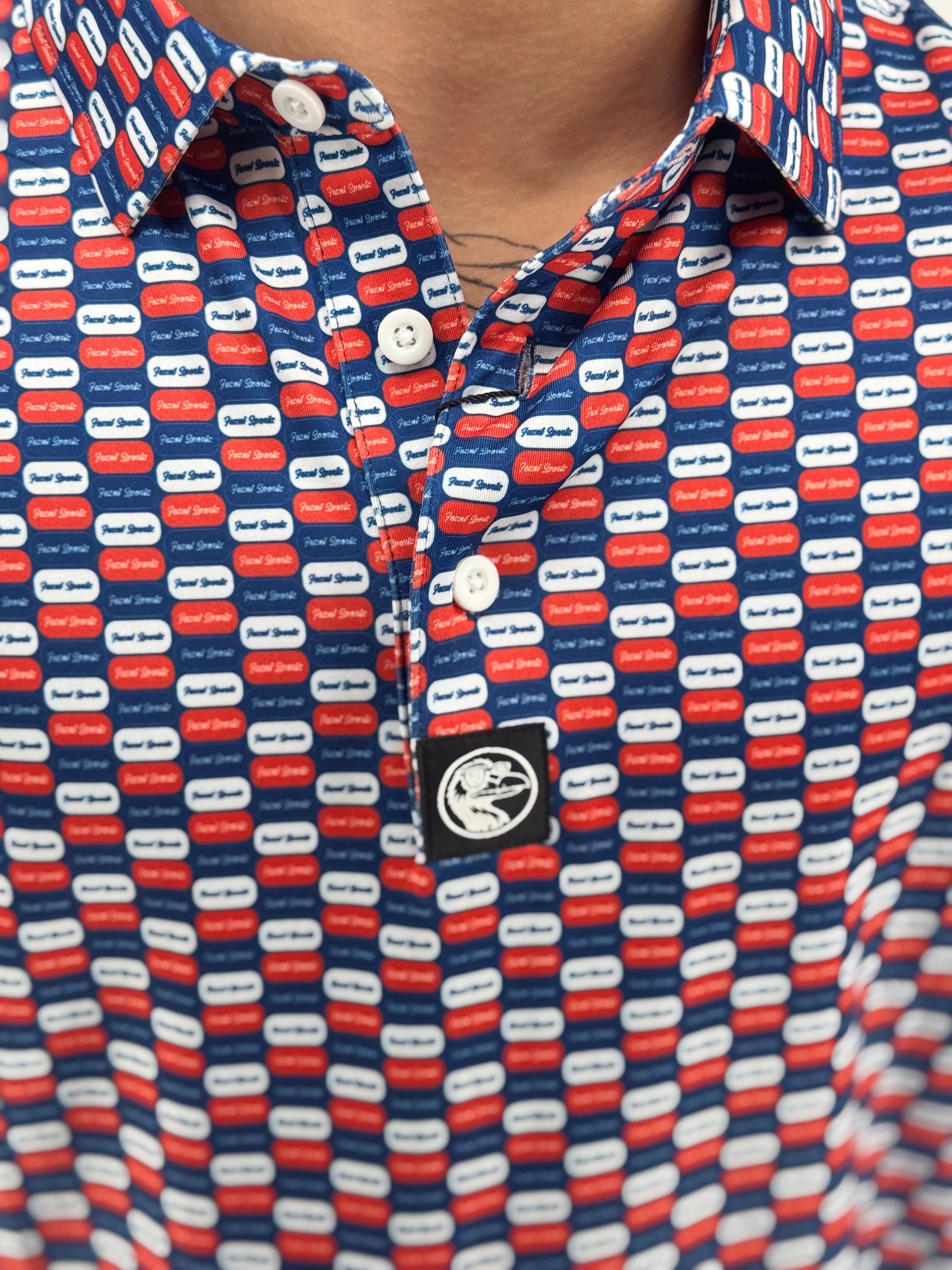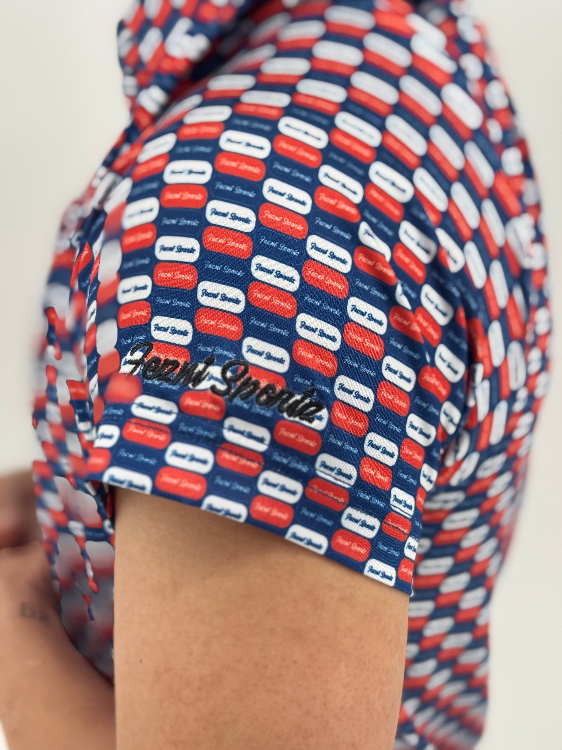 The Daily Dose is your prescription for power cuts, reckless confidence, and undeniable drip. Covered in pill-shaped Feznt logos and wrapped in a bold red and blue color palette, this polo delivers style-enhancing side effects like smoother swings, better vibes, and unsolicited compliments.