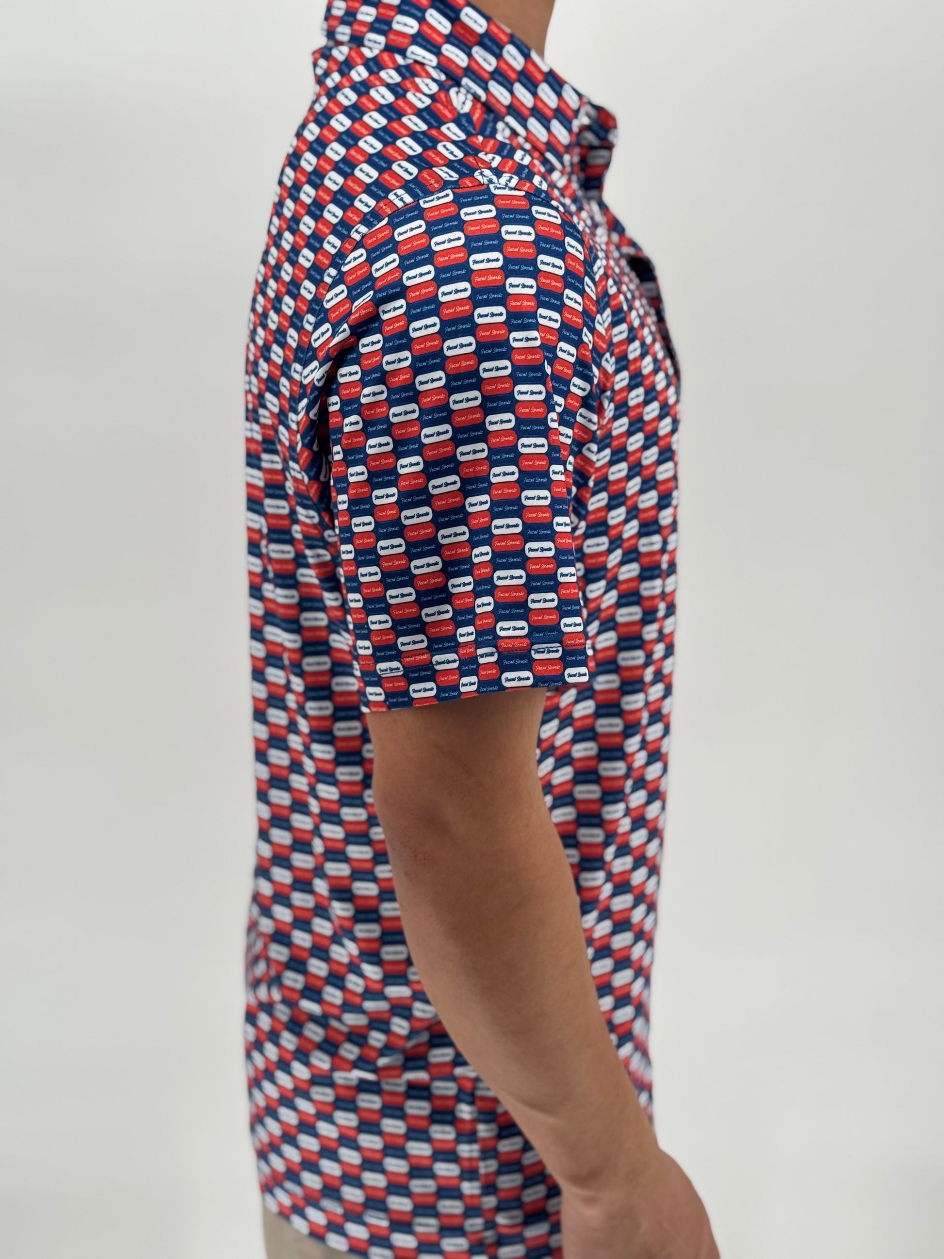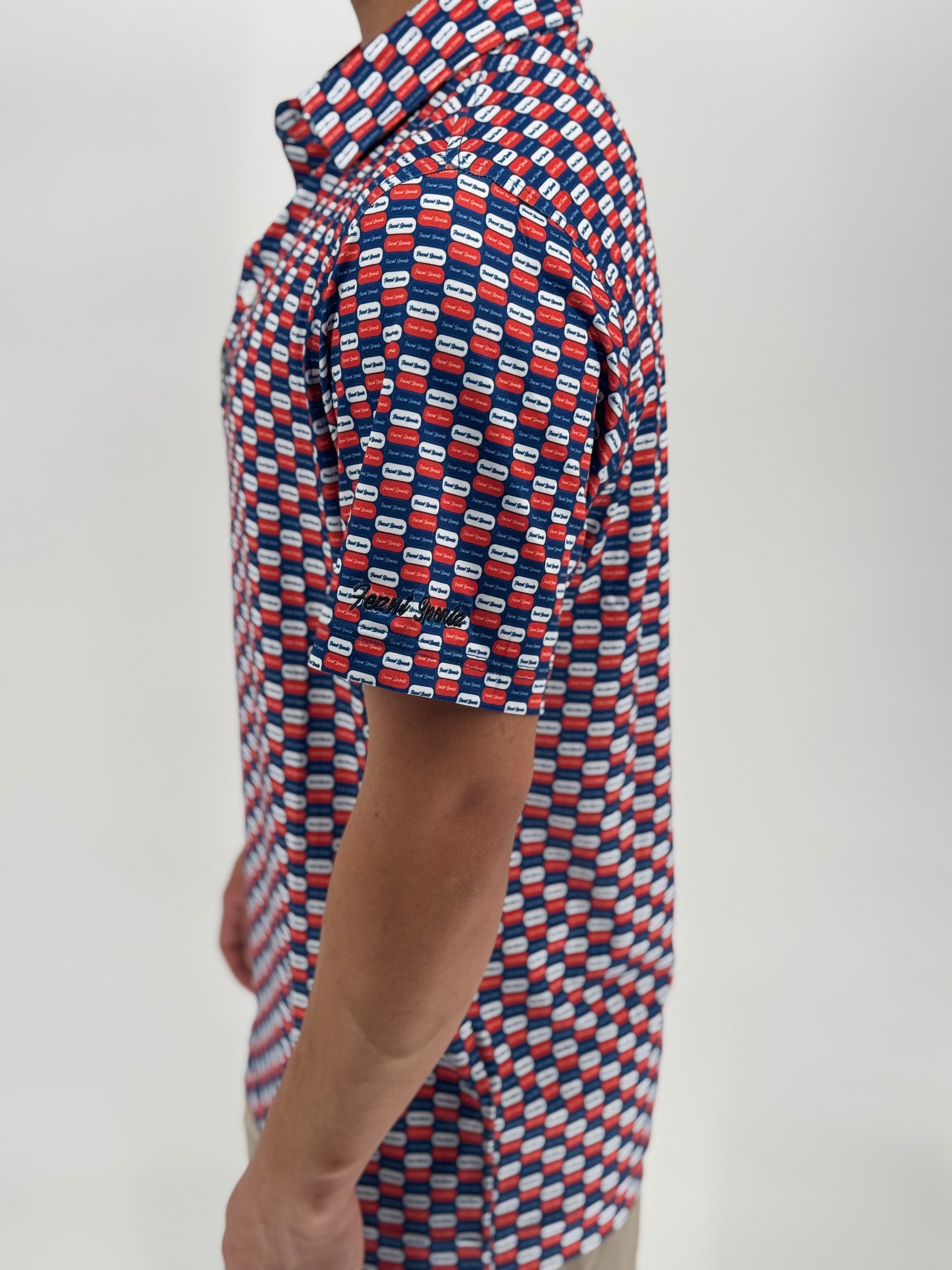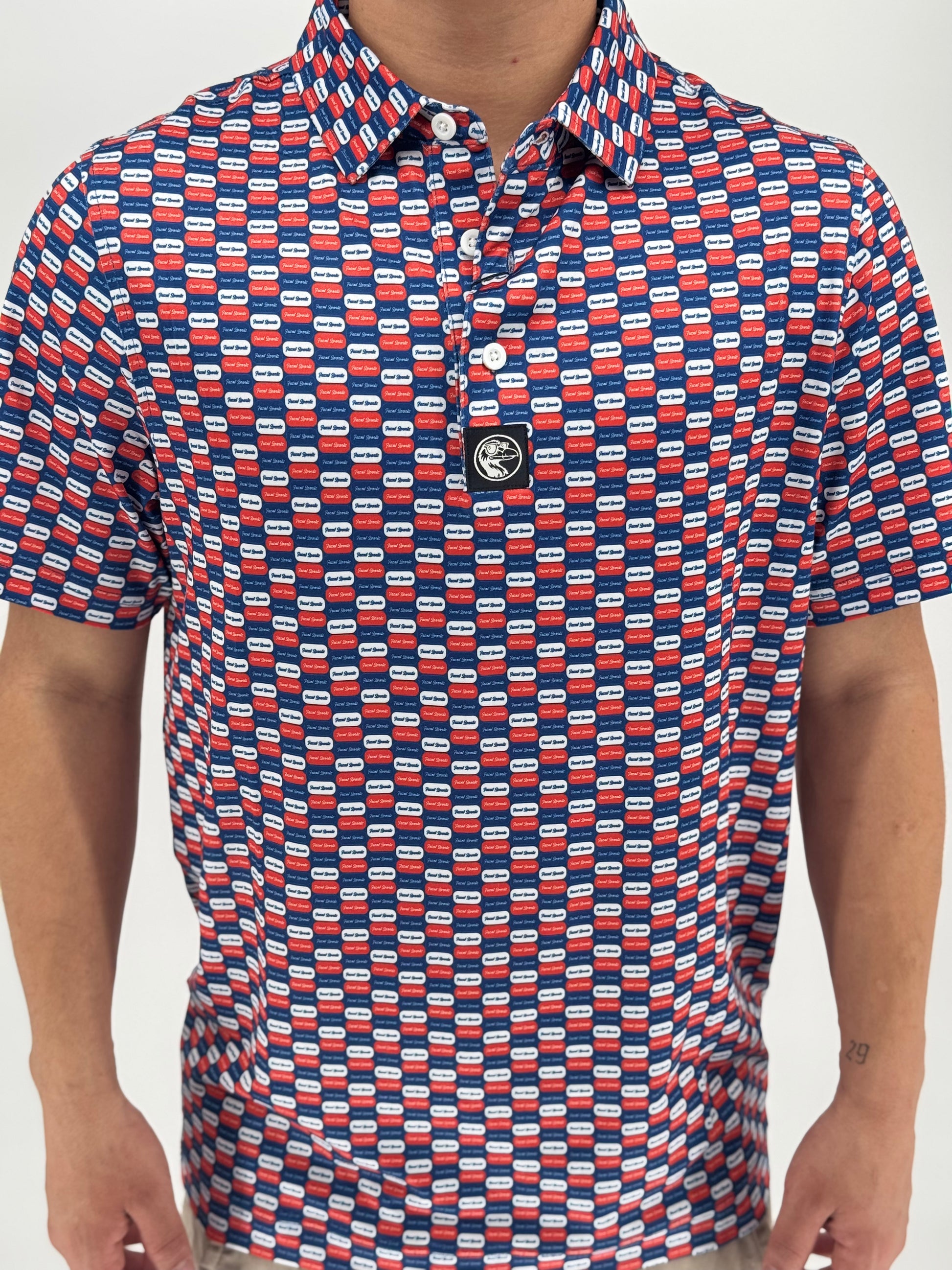 The Daily Dose is your prescription for power cuts, reckless confidence, and undeniable drip. Covered in pill-shaped Feznt logos and wrapped in a bold red and blue color palette, this polo delivers style-enhancing side effects like smoother swings, better vibes, and unsolicited compliments.