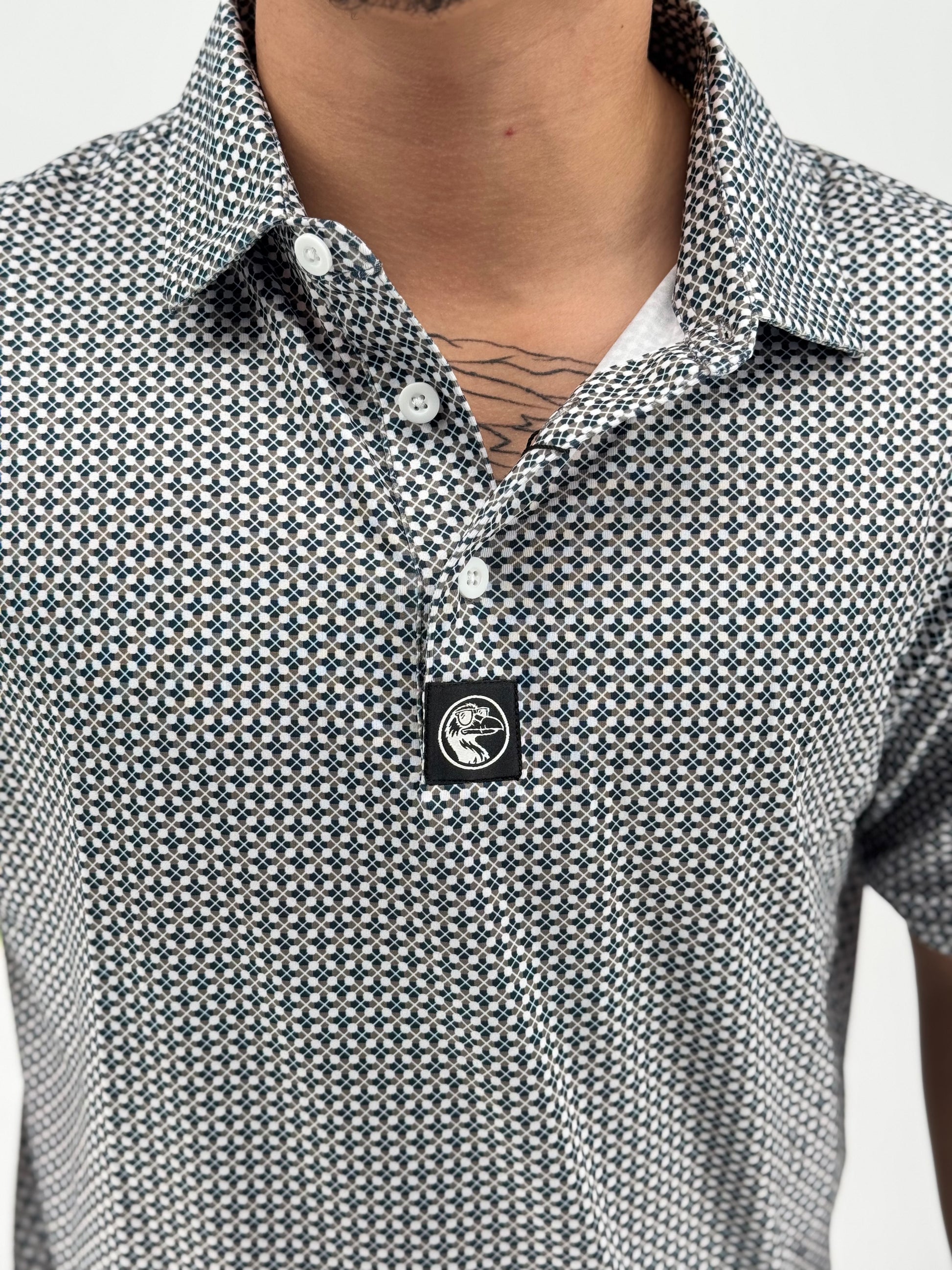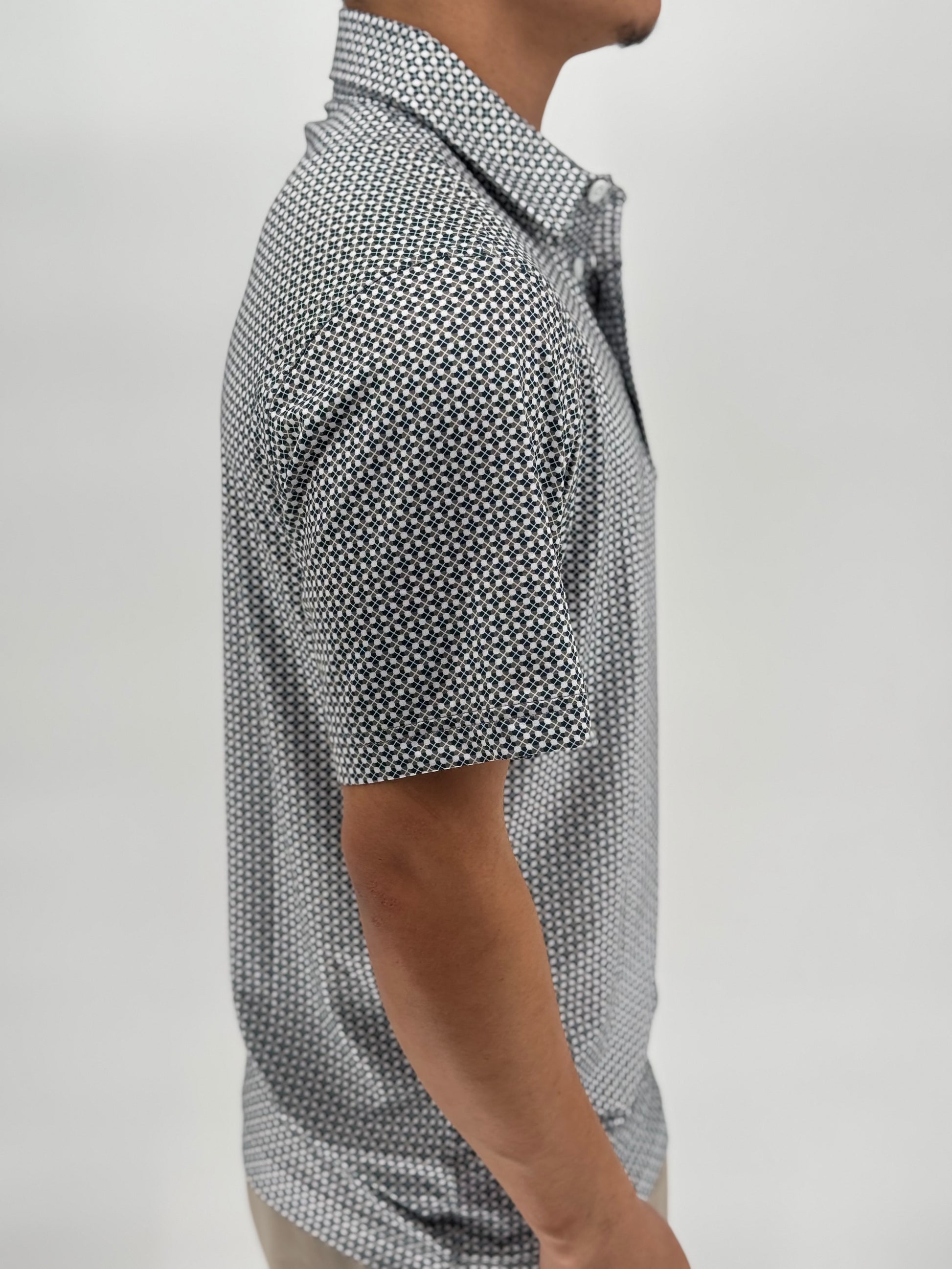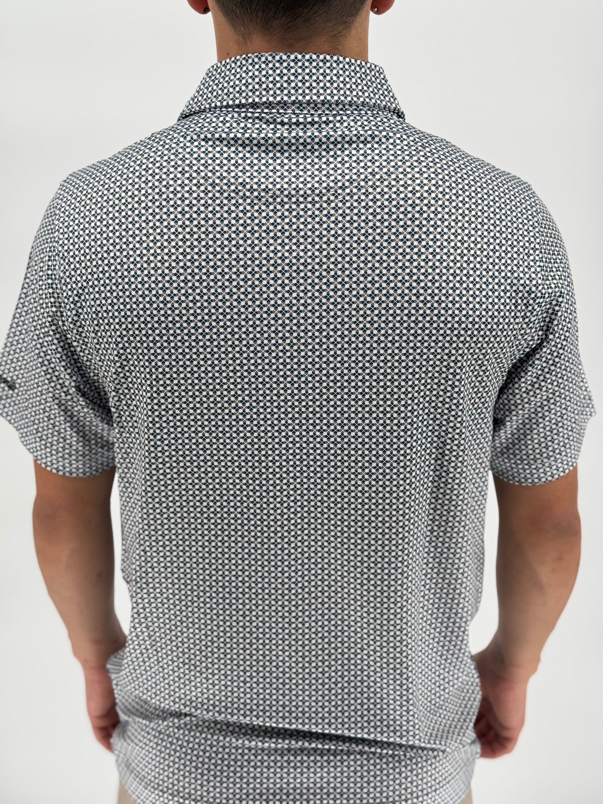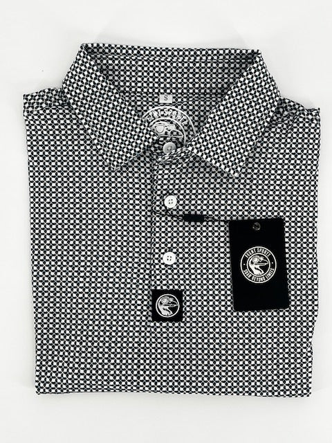 Precision meets performance in the Gridlock Polo — a sharp, geometric essential built for the focused player. Its monochrome micro-pattern creates subtle texture and clean lines that look as good in motion as they do at rest. Crafted with breathable, stretch-knit fabric and tailored to move with your swing, this shirt delivers understated swagger and all-day comfort. Whether you’re threading fairways or navigating the clubhouse, Gridlock keeps you dialed in.